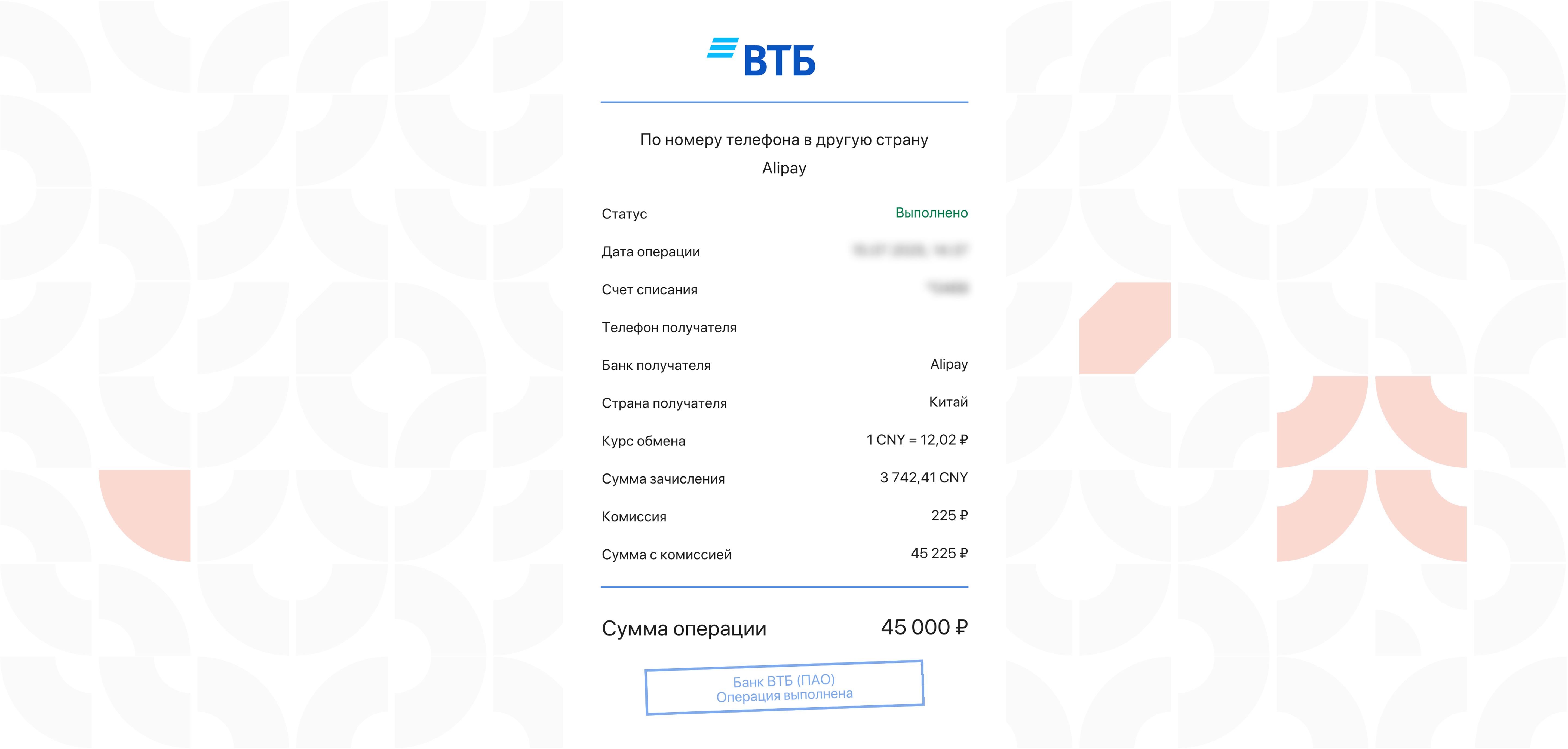 Пополнение Alipay через ВТБ работает, однако не без проблем. Есть случаи, когда сумма просто "зависала" между банком и кошельком, хотя чек об операции сигнализирует об обратном — для банка перевод прошёл и всё чудесно, однако на Alipay — перекати-поле, пустота и нуль на аккаунте.